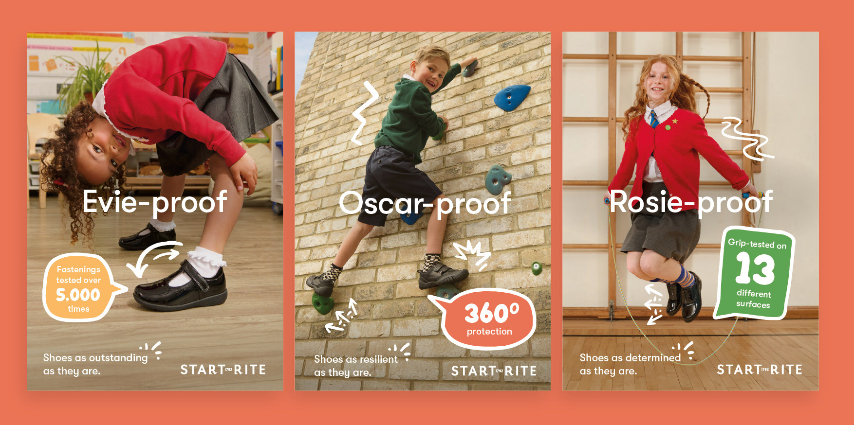 The ‘Child-proof’ campaign doubles down on the durability of Start-Rite school shoes and uses testing data and features to prove their quality.