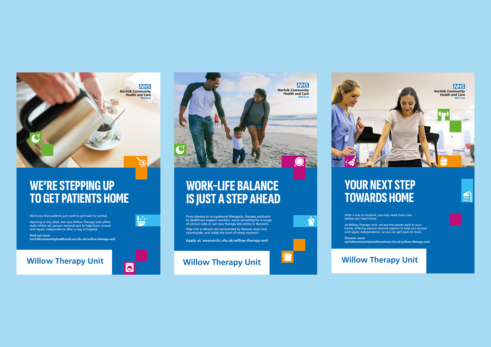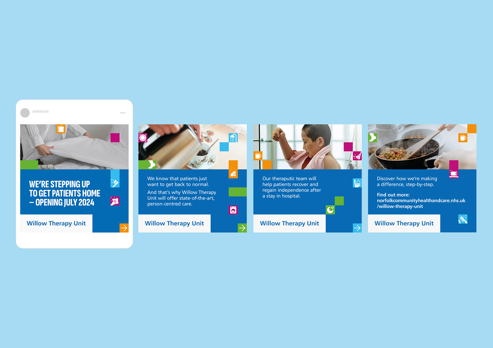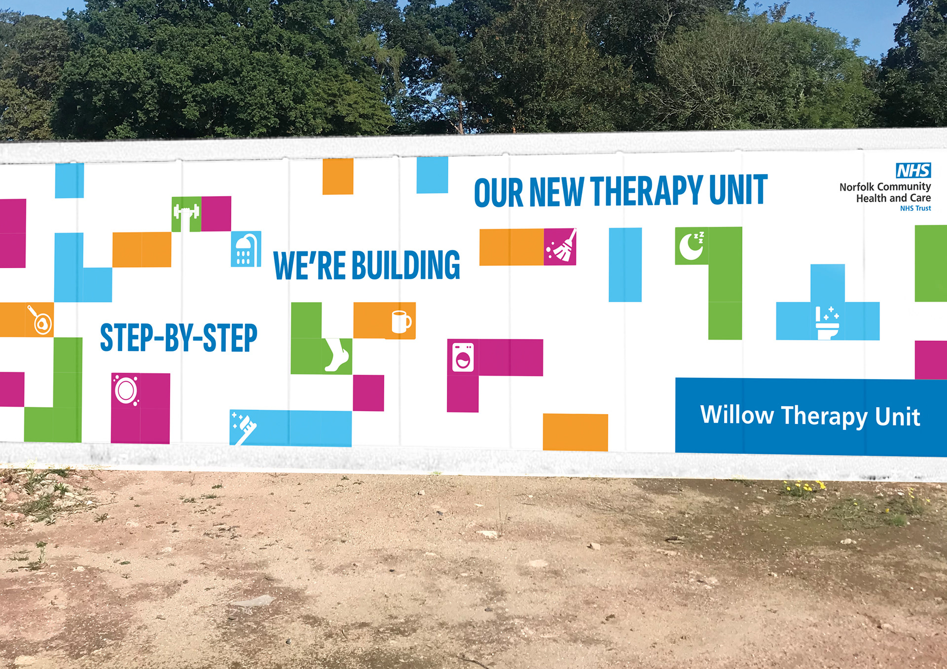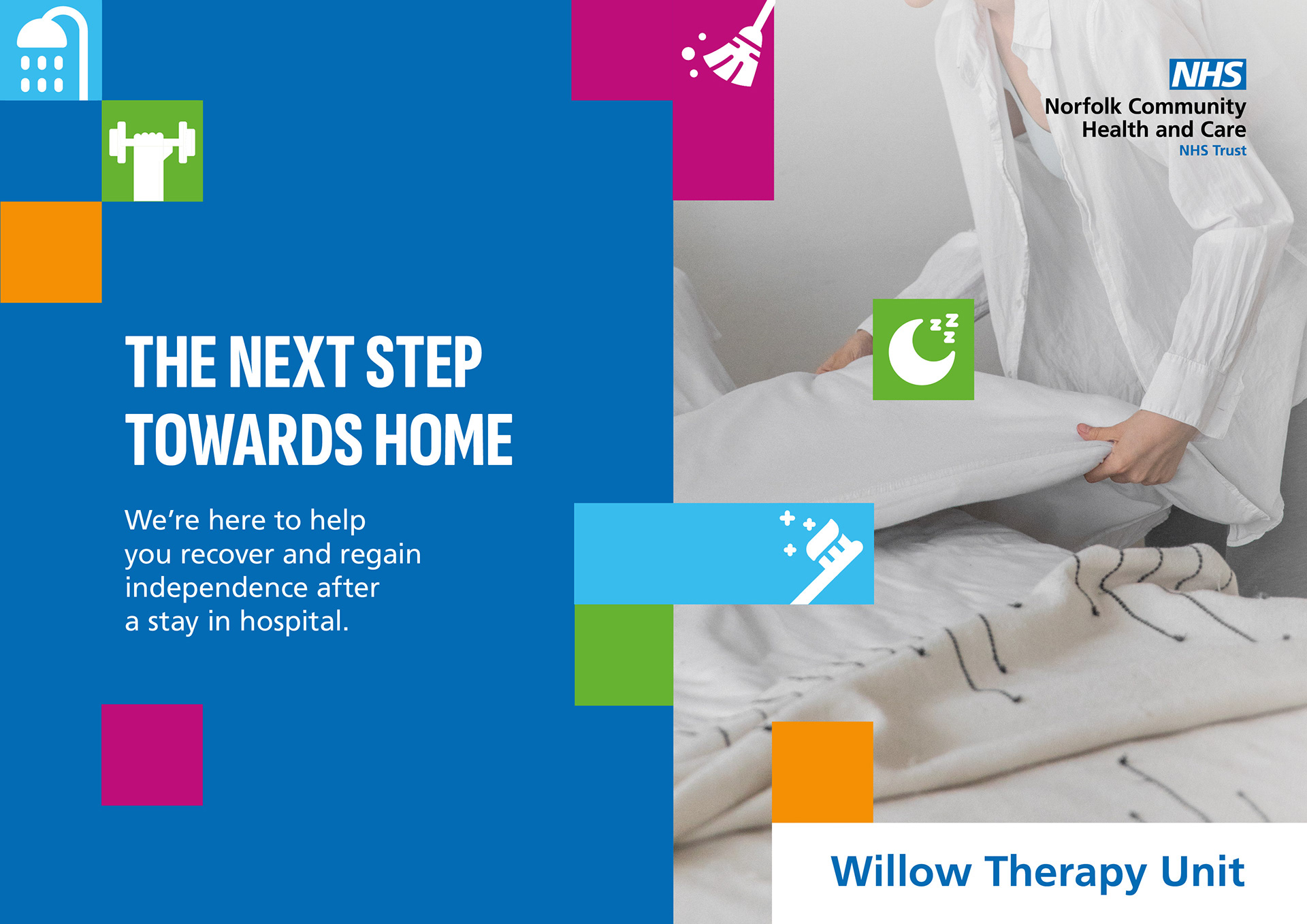 Naming, Brand strategy, Visual identity, Tone of voice, Campaign strategy and design implementation for a state-of-the-art, therapy-led rehabilitation unit on the site of Norwich Community Hospital.